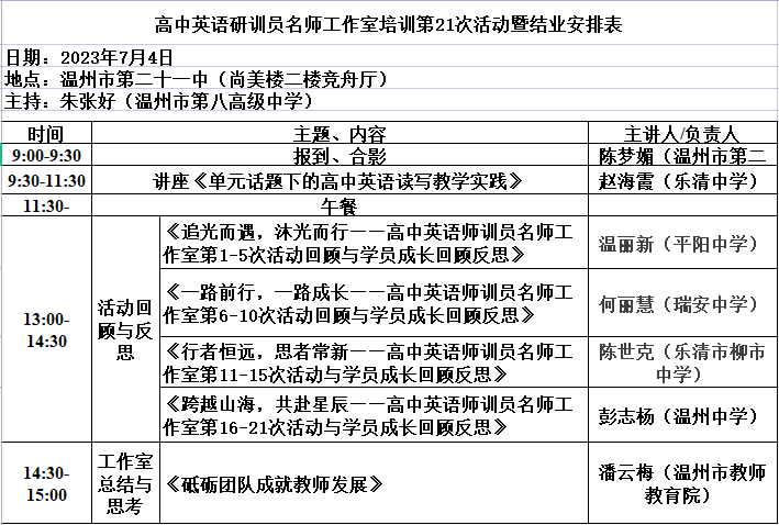 关于举行潘云梅高中英语学科师训员 名师工作室第21次活动的通知