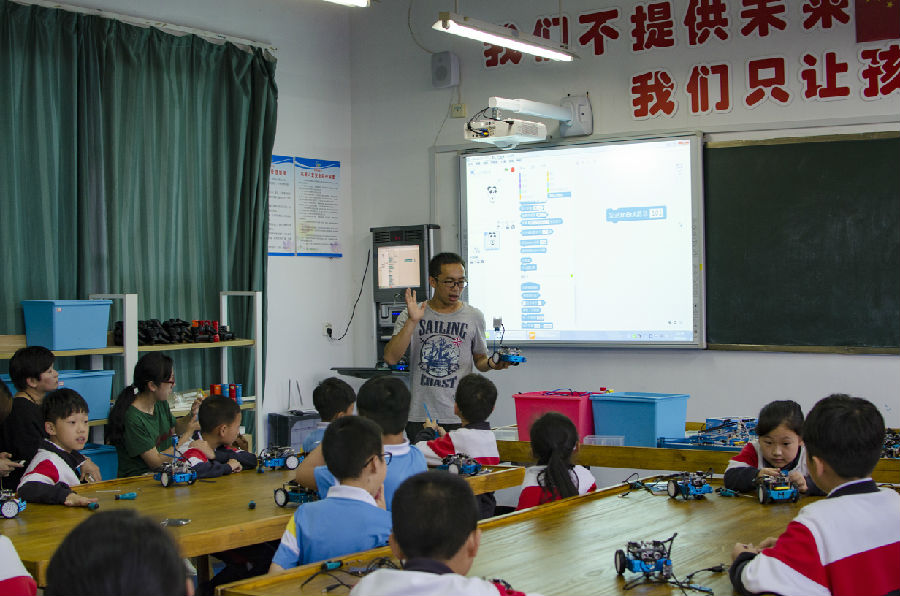 最后,黄岳明名师进行《基于核心素养的创客课程设计》的专题讲座。