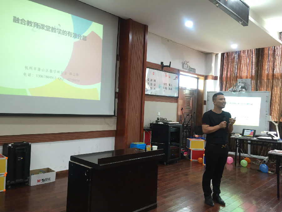 第三部分活动是邀请了萧山区特教教研员邵立峰做专题讲座,邵老师以《融合教育课堂教学的有效分层》为题,详细讲述了融合教育课堂教学的目标、内容、活动、策略、作业等五个方面的有效分层。邵老师的讲座贴近资源老师的教学实际,并用丰富的教学案例帮助老师们理解专业名词。参加活动的老师纷纷表示意犹未尽,期待邵老师下次能再来温州分享。