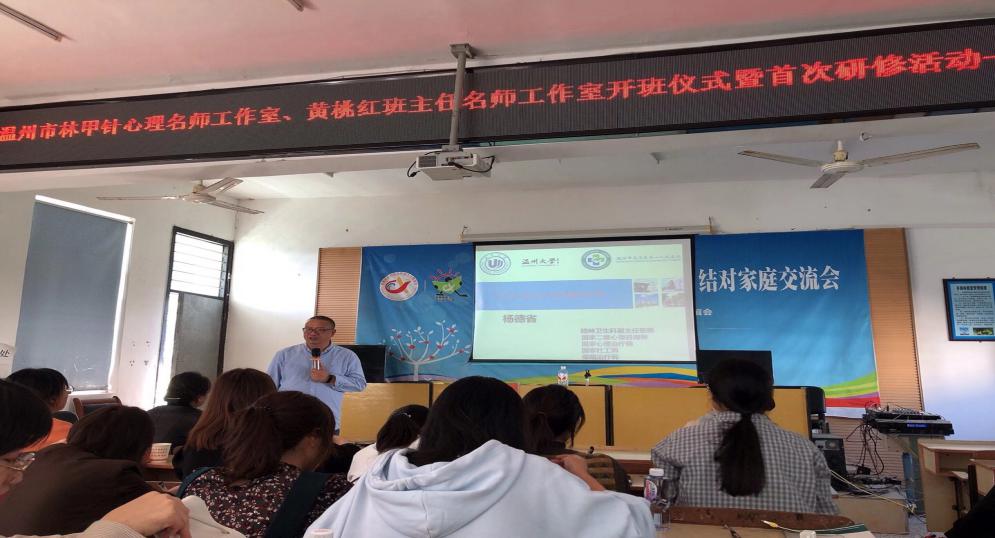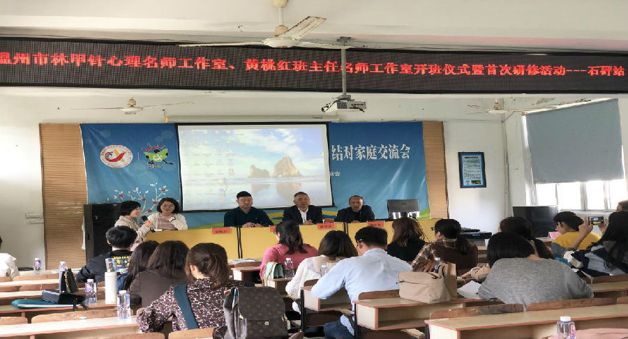 10月30日,在温州市名师建设工作领导小组的指导下,苍南县教育局的支持下,旨在促进学生身心健康发展,推进心理健康教育教师队伍建设的温州市林甲针心理健康名师工作室第一次活动暨开班仪式如期在苍南县金乡镇石砰学校举行。导师林甲针、池长仙副科长、杨德省医生以及工作室全体成员等三十余人参与了本次活动,活动内容包含观课、开班仪式、讲座学习等,为期一天。