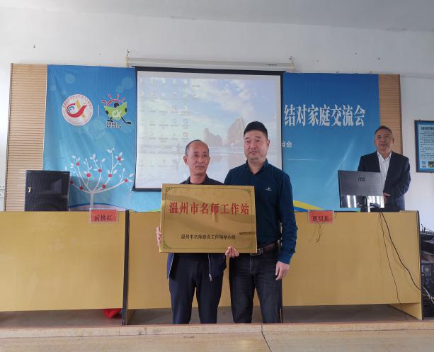 随后,正式开启工作室启动仪式。由吴欣老师主持,苍南县教育局人事科副科长池长仙授牌苍南县石砰学校为温州市名师工作站,同时为林甲针老师颁发工作室导师聘书。