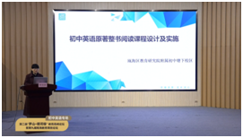 瓯教院附中塘下校区英语组教研组长林晓蒙老师带来了题为《初中英语原著整书阅读课程设计与实施》的主题交流。让我们了解了该课程以阅读本身带来的益处与培养学生水滴石穿精神的方塘文化为背景,林老师通过实例从补充学生课外阅读量、了解西方文化、完善思维模式、提高英语综合运用能力的四大目的出发,将罗尔德·达尔的系列原著故事与改编剧本作为课程内容,设置了导读课、自主阅读、读中推进课、班内成果展示课和英语节成果汇报课等不同课型。林老师提到“表演”贯穿整个课程,除了课内的表演外,该课程还创造条件让学生在配音比赛、课本剧比赛中进行表演。通过演绎,学生走近了角色、走进了书本,也让整个课程趣味十足、充满活力。
