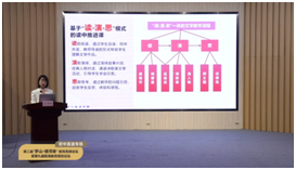 瓯海区外国语学校教学科研处主任、省教坛新秀、瓯海区名师庄蓉蓉老师的《基于“读-演-思”模式的初中英语读中推进课教学实践》的主题交流让我们走进“读中推进课”与“读-演-思模式”。庄老师以瓯外团队用“读-演-思”模式推进七年级学生整书阅读The Jungle Book的教学实践为例,着重介绍了阅读任务单、图形组织器和读者剧场这三个读中推进课典型教学活动及工具,分享了“读-演-思”模式的具体运用和学生的创造性成果。庄老师提到整本书阅读的育人效果取决于课堂方式的变革和创新,建议在实践“读-演-思”模式的过程中,要彰显整书阅读教学的主线意识、策略意识、思维意识和素养意识。