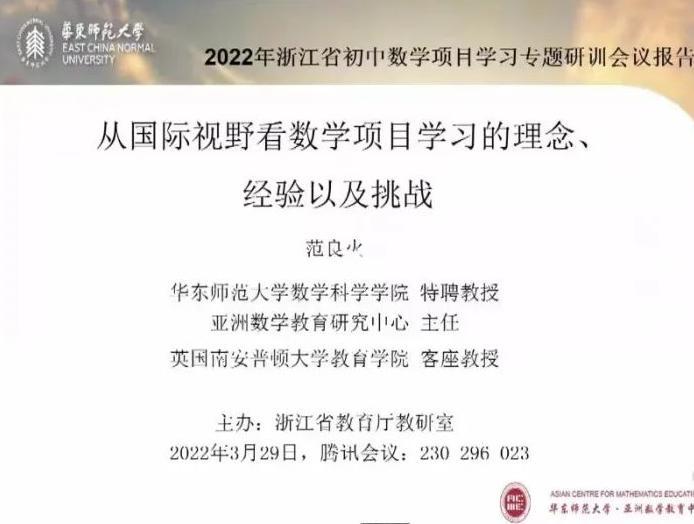 3月29日,由浙江省教育厅教研室主办,杭州市基础教育研究室承办,杭州育才中学协办的“2022年省初中数学项目化学习专题研训会”活动在疫情防控常态化的背景下顺利举行。