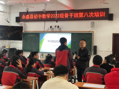 第二节是由仙居县实验中学的吴永伟老师为大家带来的《平行四边形复习》,吴老师通过基础的几何图形让学生从普通的四边形到平行四边形再到特殊平行四边形的变化,带领所有学生从头复习了一遍相关的几何知识,在对学生的章节知识进行细致的复习之后,吴老师以边角对角线三个几何特征出发,让学生在习题中得到了进一步的提升。