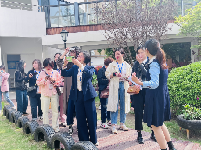为了更好地发挥名师工作室的示范引领作用,2023年4月13日,温州市李慧名师送教工作室第八次研修活动在瑞安市莘塍镇中心幼儿园举行。活动安排了参观幼儿园环境、专题讲座、观摩活动,以帮助学员提高审美能力,并在幼儿园环境创设中得以运用。温州市李慧名师送教工作室学员、瑞安市李慧名师工作室学员、瑞安市莘塍中心幼儿园骨干教师、瑞安市莘塍中心幼儿园结对园教师共同参与了此次活动。