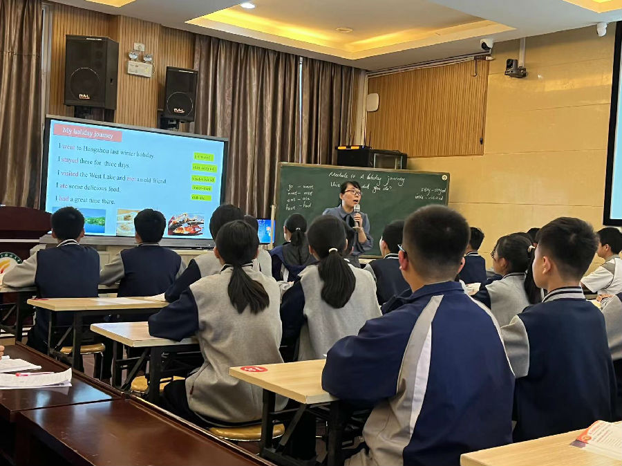 第二节课是来自永嘉县上塘城关中学的胡建琼老师带来的7BM10U1 What did you do?的听说整合课。胡老师为我们呈现了一节以生为本、结构清晰的真实课堂,环环相扣,落实度高,听说整合课的设计和中考听力口语形式接轨。
