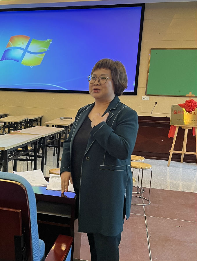 最后,永嘉县初中英语研训员徐立群老师对杨老师表示了热烈欢迎,期望学员们在杨老师的指导下,能在教育教学以及教科研方面不断提升自我。徐老师专业实力扎实,语言幽默风趣,与会的老师们用热烈的掌声进行了回应。