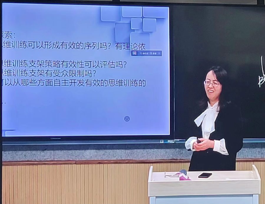 接着,来自青田伯温中学的陈瑜老师,带来讲座《议论文写作的思维训练支架》。通过分享《“劝学”新说》写作教学课例,总结了以“支架”导写来激发表达与交流,助推写作思维发散和提升的宝贵经验。尤其详细介绍了“思维大脑模型”和“七大思维”导写支架在实际写作中的运用,操作性强,给听课老师带来很大启发。