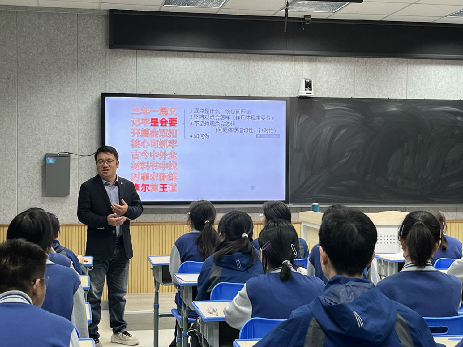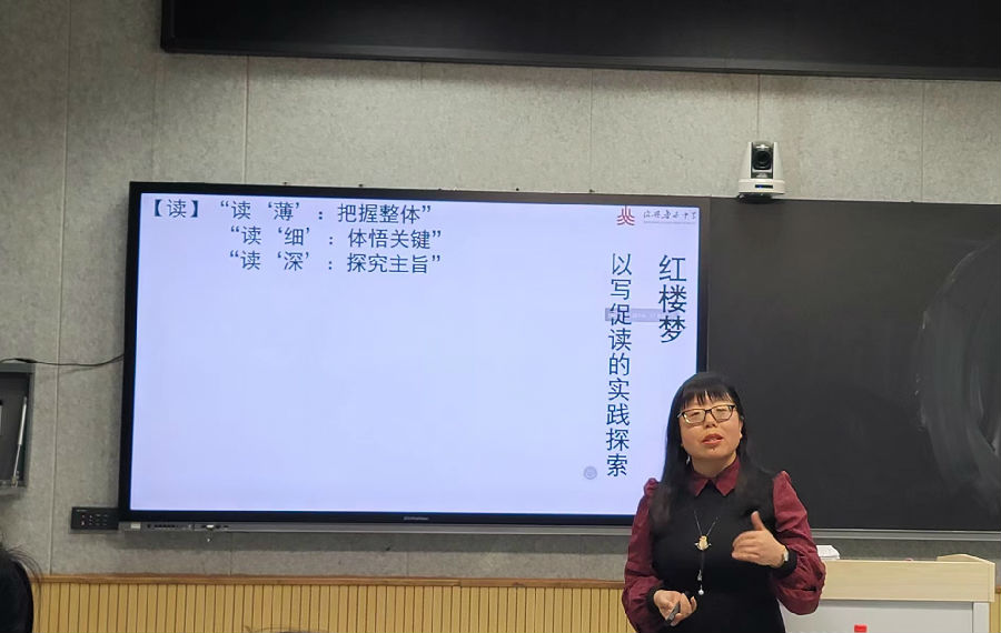 下午,来自鲁迅中学的鲁明儿老师分享了亲自开发的省级精品课程《<红楼梦>以写促读的实践探索》,这种方式为听课老师开启了《红楼梦》整本书阅读教学的新思路。来自新疆兵团的孙斌斌老师带来了统编版必修下第一单元写作任务实践案例,从任务一“智者论道,感性追思”到任务二“头脑风暴,理智设问”,再到任务三“牛刀小试,论述提纲”,三个学习任务,从阅读到思考,再到表达,对学生的思维建构和语言能力的提升有着显而易见的成效。学生由知而会的过程需要实实在在的训练。最后,来自诸暨荣怀学校的胡建刚老师带来讲座《立足文本,创设情境,读写融合》,结合亲身教学实践,传述“以读为根,以真为本”的语文教学理念。