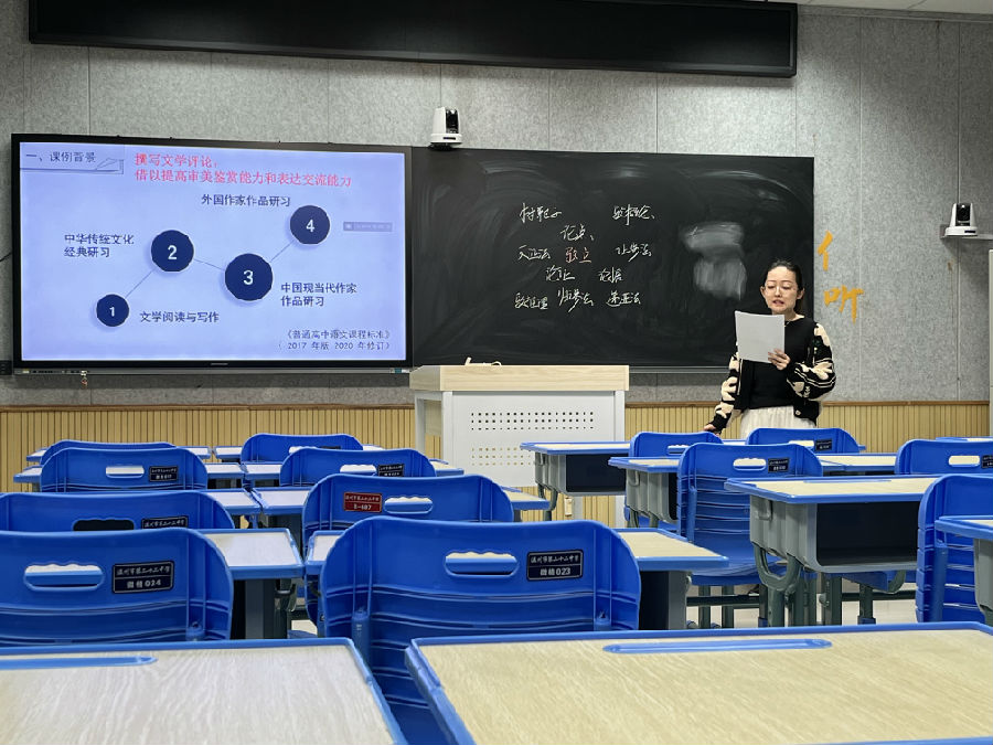 最后是龙湾中学的范心弦带来以文学短评写作指导方向的课例分享《奇文共欣赏,精妙相与评——“文学短评”写作指导教学课例》,从“概念界定”到写作时“关键问题”的指出,最后到写作方法的指导,让我们感受到文学评论踩着“短评”的小碎步登场于我们高中的语文课堂,这是我们学习语文的一件新事、乐事。