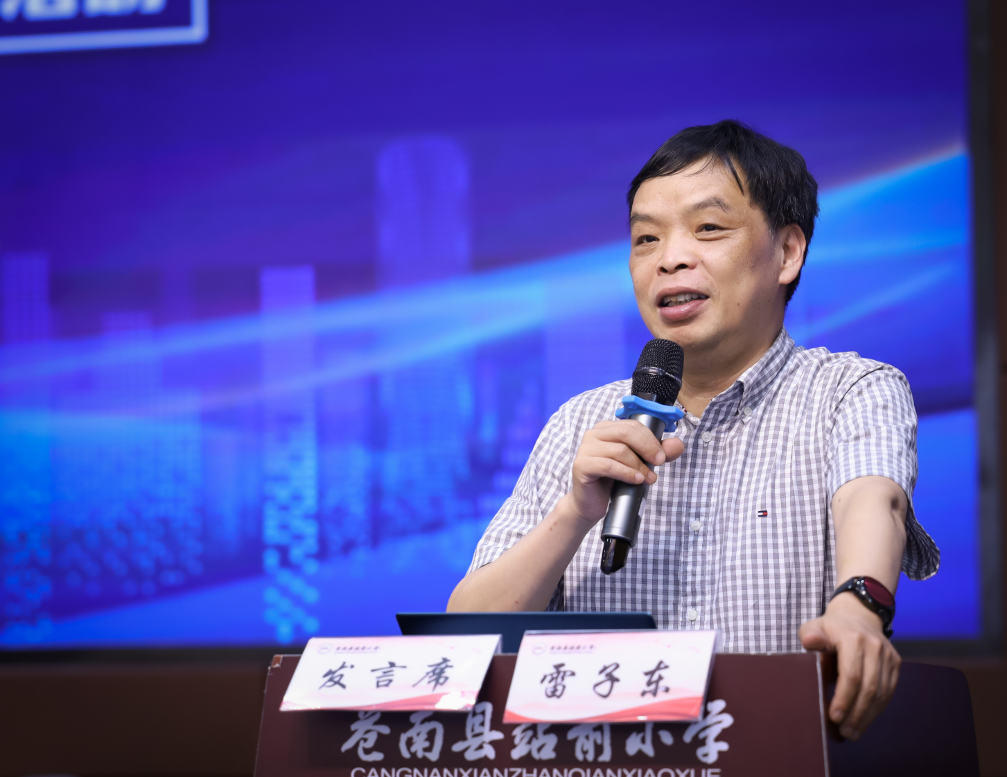 最后,杭州市萧山区教师发展学院正高级教师,雷子东老师就上面两节研讨课和两个专题报告做专业点评和指导。首先,雷老师肯定了王老师和李老师对课的设计。同时,他提出,对于低段的孩子来说,我们应该想办法把课变得更有趣;对容量大的课我们要学会适当做减法,让课堂更聚焦。然后,他对陈老师和罗老师的报告给予了充分肯定,同时对两位老师身后的苍南小数教研团队给予了高度评价。