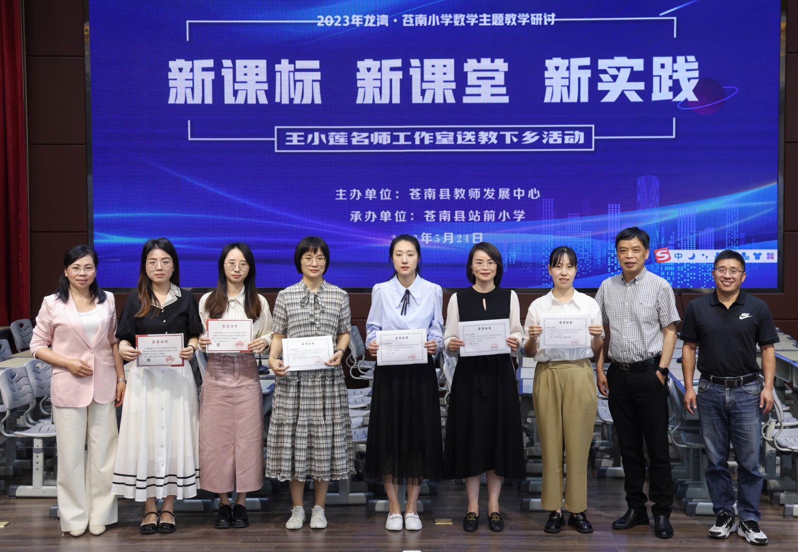 教育之美在于成长,教师之美在于课堂。教研需要合力,教研需要辐射和带动。为了实现“教育共富”,5月24日“苍南.龙湾小学数学“教研共富”研讨暨王小莲名师工作室送教下乡活动”在苍南县站前小学举行。本次活动邀请到了杭州市萧山区教师发展学院正高级教师雷子东老师,温州市名师龙湾区小学教研员王小莲老师、苍南县教研员陈裕鑫老师以及苍南和龙湾骨干教师代表。