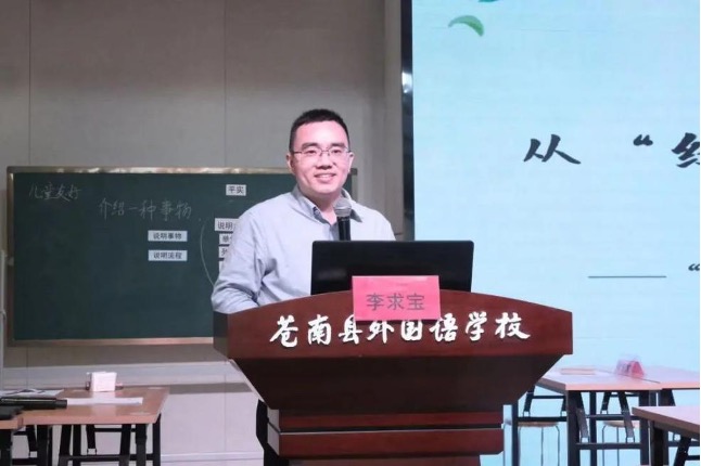 苍南县第三实验小学李求宝老师以《从“经世致用”走向“生活应用”——“实用性阅读与交流”任务群视域下的课堂转变》为主题作了课堂点评。他认为三节课实现了四大转变:构建了真实的情境任务,实现了“为学而学”到“为用而学”的转变;搭建了适切的活动支架,实现了从“为语言训练”到“为提高应用能力”的转变;辅以表现性评价量规,实现了从“关注学习结果”到“关注应用表现”的转变;提高了多样态的学习方式,实现了从“坐中独学”到“合中做学”的转变。