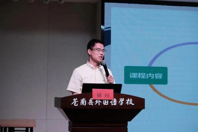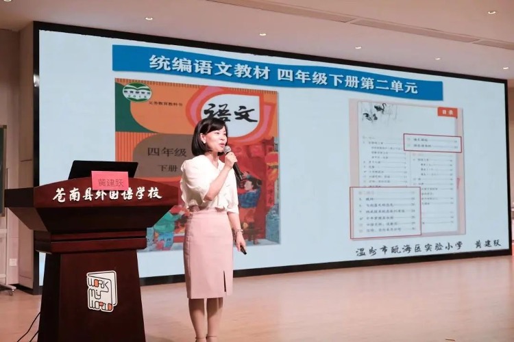 为了学习和贯彻落实2022年版《义务教育语文课程标准》,改进小学语文课堂教学,提升教育教学质量,5月23日,在苍南县外国语学校学术报告厅举行“实用性阅读与交流任务群”专题研讨暨温州市杨州名师工作室联合活动。活动由浙江省特级教师、温州市教师教育院研训员何必钻老师组织,苍南县语文教研员肖云霖老师、苍南县教师发展中心何经旦老师莅临指导。