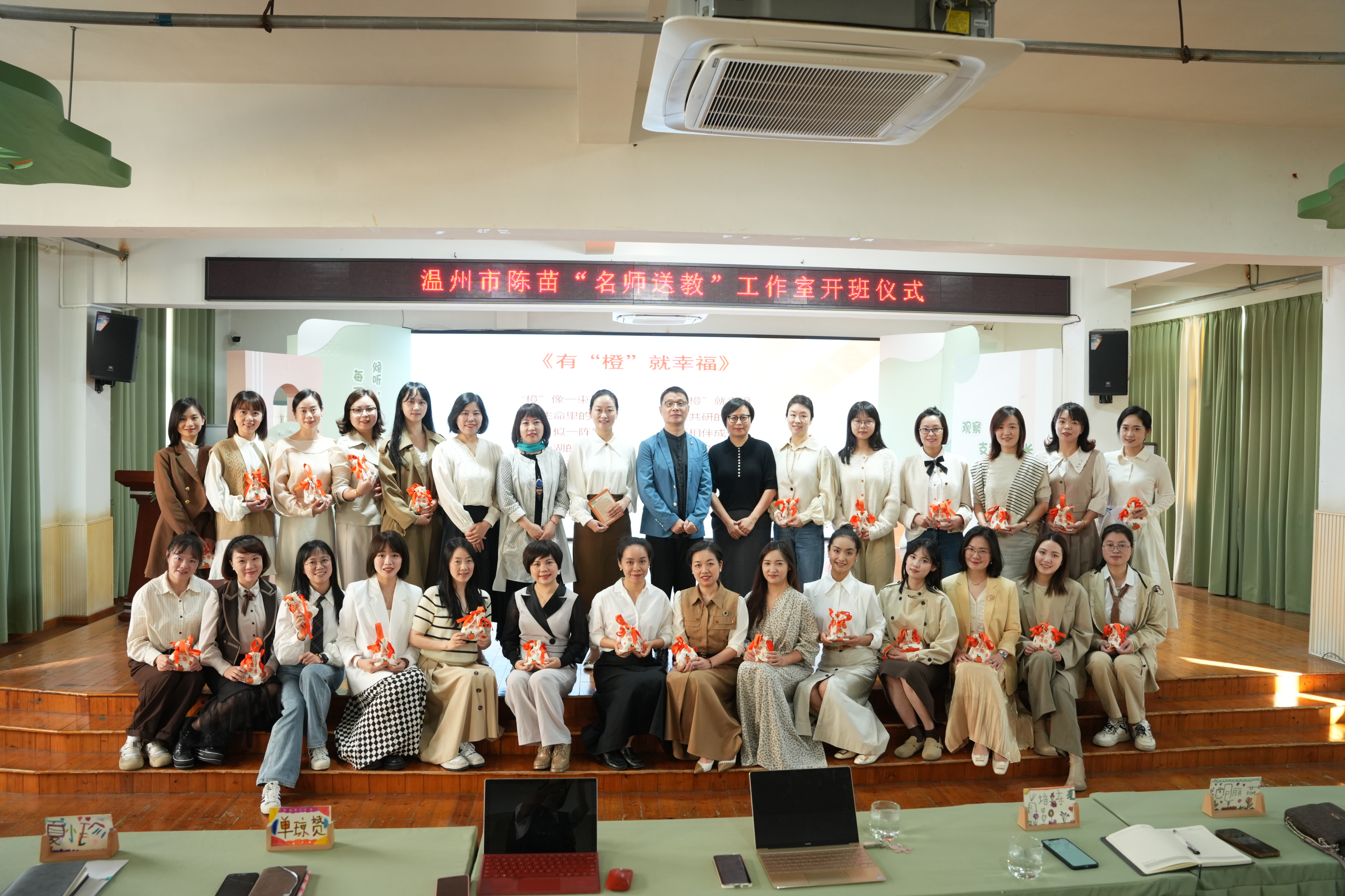 凝心聚力,“橙”就幸福。在全体学员《有橙就幸福》的歌声中,学员们递交拜师贴、陈苗导师与站点园夏园长进行授牌仪式,开启了“橙”意满满,快乐“橙”倍的一天!