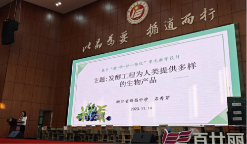 在课堂展示环节,丽水中学的林晓诺和新昌中学的吴苍丽两位优秀的年轻教师分别授课选择性必修三第一章“发酵工程”第三节“”发酵工程为人类提供多样的生物产品”第一课时和第二课时。