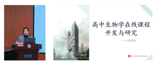 浙江科学技术出版社陈潇潇老师分享了高中生物学在线课程开发与研究。她从开发背景、内容以及实施过程中碰到的各种技术问题一一进行了阐述。也为我们后续将信息技术应用到教学中提供了很好的范本。
