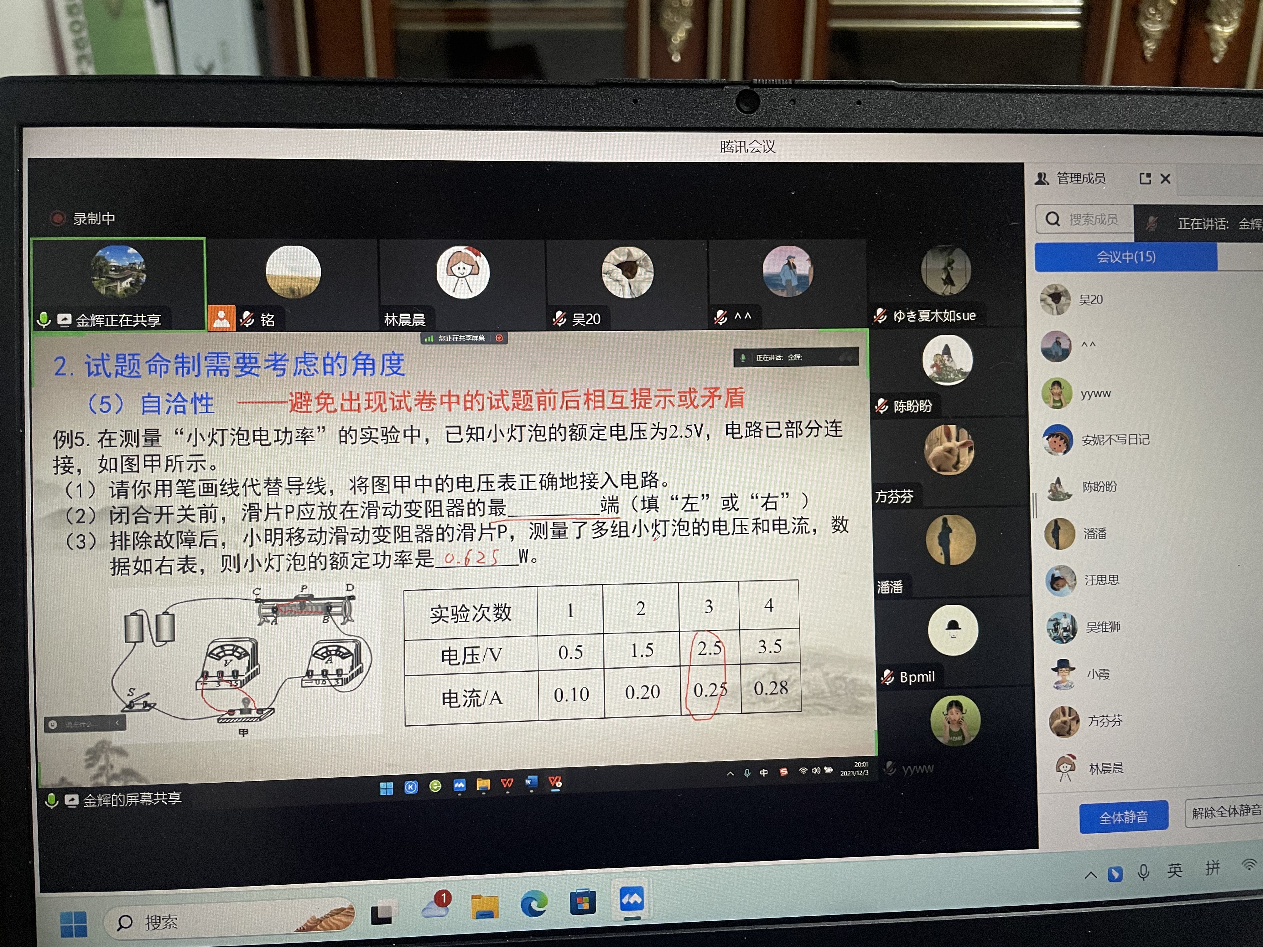 12月3日周日晚上7点,讲座准时开始,金辉老师老师通过基于素养立意试题的赏析、规范试题的标准和关注角度、试题素材积累的常用途径、试题改编的常用方法、基于高阶思维的试题命制途径等方面向老师阐述命题的方法与技巧。