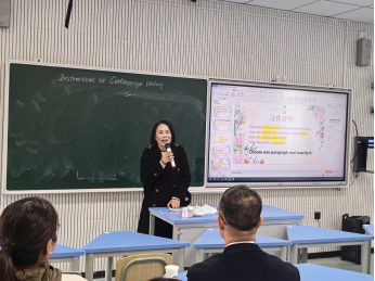 龙湾中学的彭李菜老师认为,第二节徐翠燕老师的这节课非常出色,无论是语言面貌还是上课节奏都很到位。徐老师这节课的设计站位高,学生参与度高。在课文处理方面,徐老师先带着学生处理第一段,再让学生自己处理后面的段落,体现了学生自主课堂理念。由于前面的输入充足,学生后面的输出也非常棒。同时,教师引入评价体系,和学生一起评价作品。彭老师也提出了几点思考:给学生阅读的时间是不是少了一些?2到4段让学生一起阅读而非分开一段一段(有割裂感)是不是更合适?