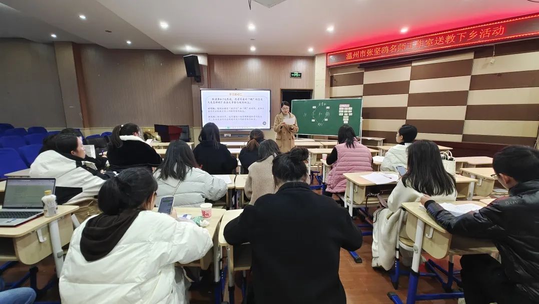 12月4日下午,张坚鸥名师工作室第3次活动暨“名师送教”县级展示活动如期在乌牛镇中心小学举行。本次“同课”共精彩,“异构”启新思的送教活动分为3个阶段:课堂展示、评课交流、导师讲座。