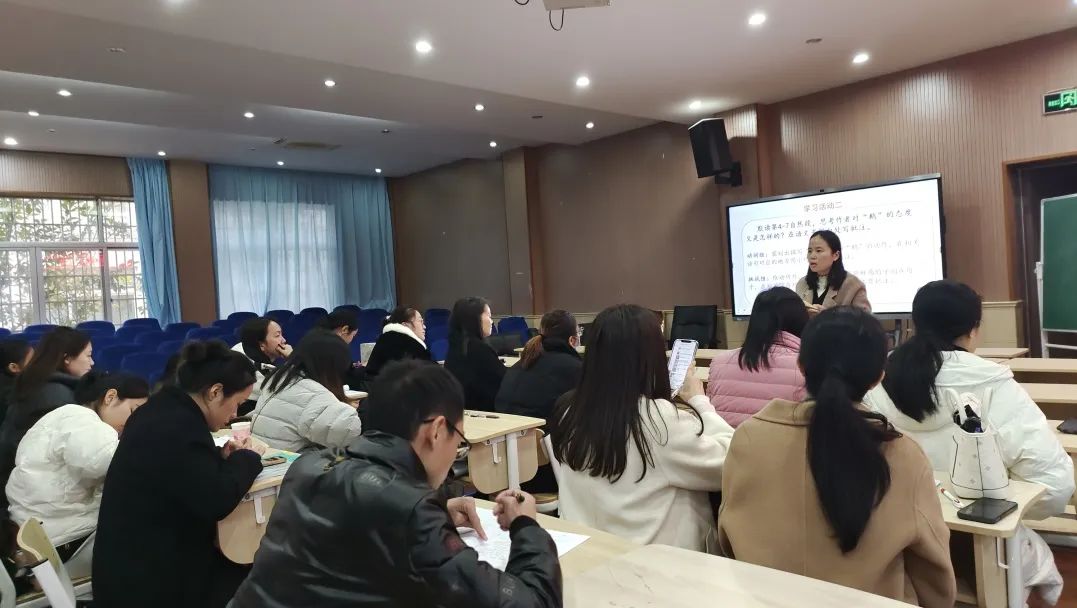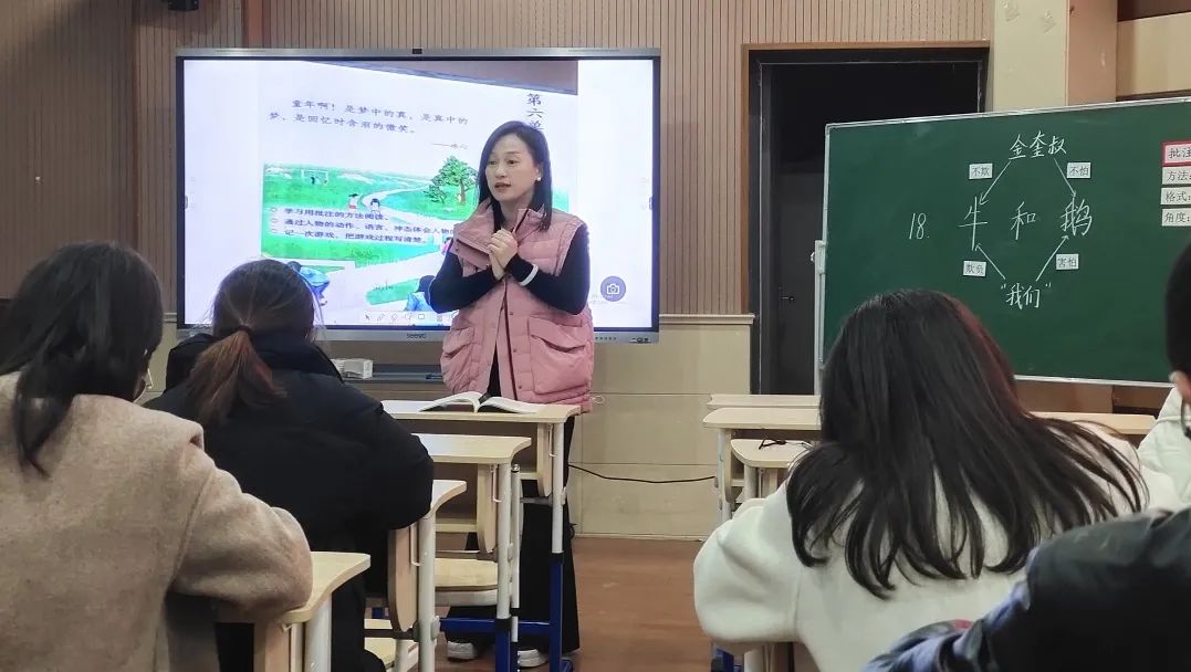 厉老师对第一节邵响应老师的课进行了点评。她指出,邵老师的课整体流畅,各环节联系紧密。在字词教学中,三组词语选择颇具匠心,通过聚焦拟声词、动词等,实现词语教学效益最大化。感知环节设计巧妙,通过出示判断题,再用“一开始……,有一次,后来……”的句式连起来说,让学生对全文有了一个整体的把握。在重点批注内容的学习上,通过回顾学过的课文,结合本单元的“交流平台”,让孩子知道什么是批注,批注可以写什么,联系课文批注,了解批注还可以从哪些角度来写,循环渐进,扎实有效。之后聚焦课文学写批注的方法,并将其进行迁移运用,再进交流展示,实现一课一得,有效落实教学目标。