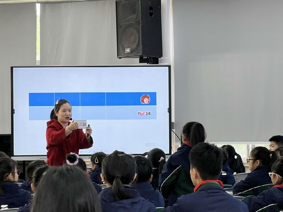 温州市市府路小学缪张慧老师为我们带来了第三节课PEP3 Unit6 B Let's Learn。缪老师以一首Job song以及Yes or No的游戏调动学生,在一看和二看活动中,学生勾出本课所学新词。在老师充分示范的基础上,学生利用拼读法,实现对本课新词的拼读自学;在选一选、连一连、写一写的活动中,实现对新词音、形、义的理解和掌握。最后,学生在演绎和体验职业的活动中实现情感上的升华。