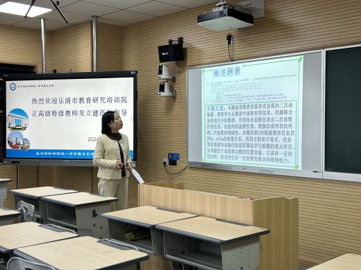 乐清市教育局教研室初中数学教研员、正高级、特级教师吴立建老师分享了自己多年来的教学研究经验和方法。他从理论到实践,以案例为例,生动地讲解了如何培养学生的数学思维和解题能力。一些教学技巧和方法的介绍让在场的教师们受益匪浅,我们在场的老师情不自尽为他的精彩讲解点赞。
