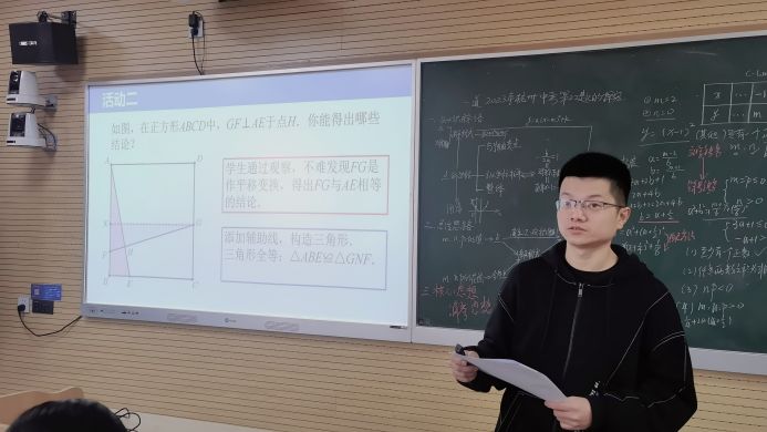 接着,周冬东老师的课体现了一题一课模式的精华所在,课堂上他精准评价,展示数学课堂中以教师为指导,学生为学习主体的理念。精心设计课程内容,带领学生逐层提高,使知识不断提升拓展,及时归纳总结数学思维和方法指导。通过对题目的独到深入的讲解,达到了很好的教学效果,能结合多种教学手段,使学生对知识的掌握更深刻。教学内容重点突出,教学目的十分明确,教师具有极高的专业技能。授课方式新颖别致,激起同学们的兴趣,教师很注重互动,课堂学习氛围轻松愉快,真正达到了教学的目的要求。