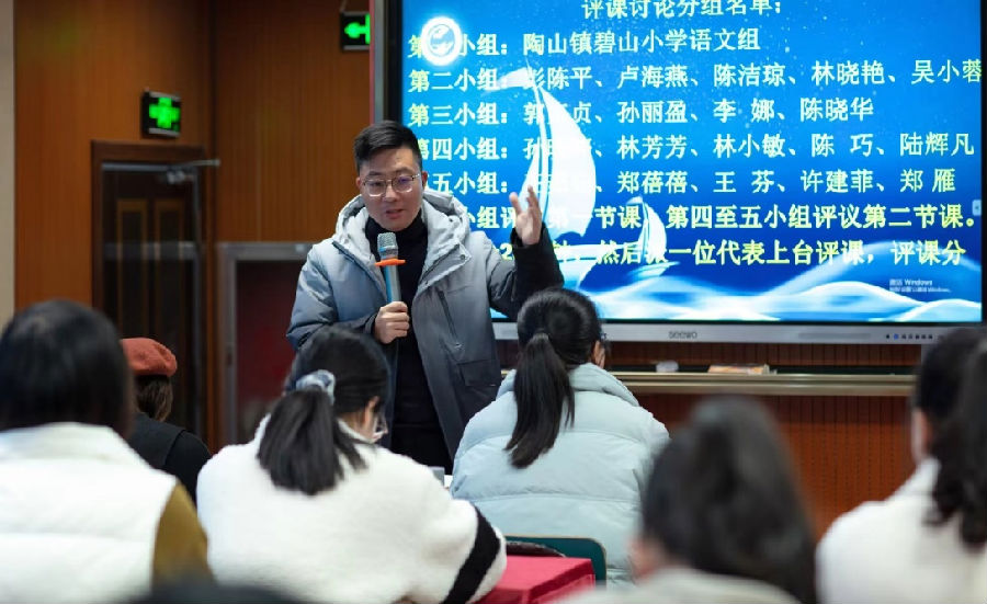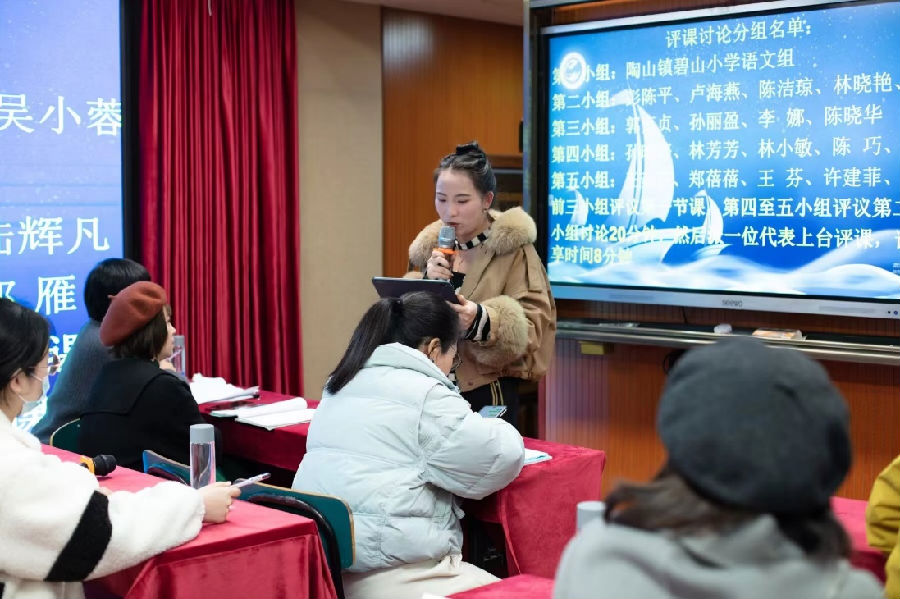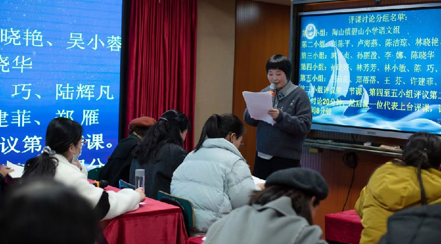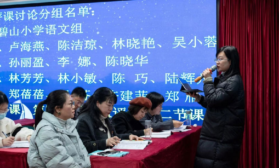 冬日暖意融,教研意正浓。为深入理解《义务教育语文课程标准》(2022年版)的精神,提升老师们的评课能力,温州市陈杰名师工作室于12月27日下午在瑞安市陶山镇碧山小学举行了第8次活动。本次活动由瑞安市陶山镇碧山小学语文教研组长叶佩佩老师主持,分研讨课与评课研讨两个大环节。