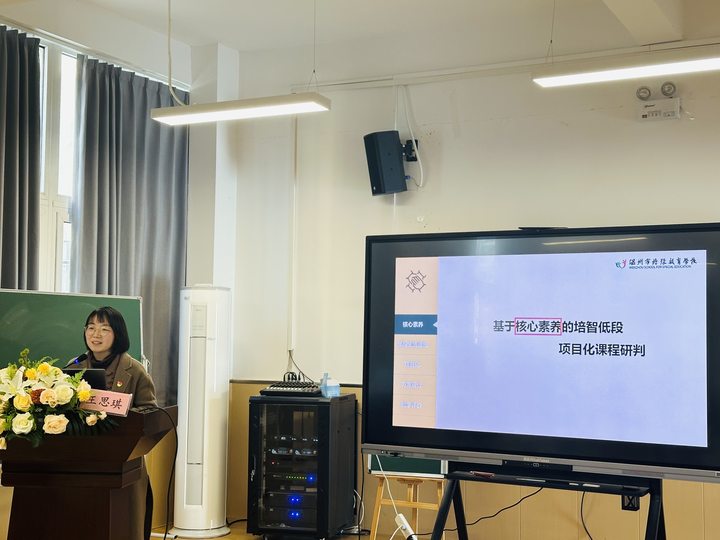 温州特校的王思琪老师以《基于核心素养的培智低段项目化课程研判》为题,着眼于核心素养、低段生活适应、项目化学习、方案设计、教学评价这五个维度,对培智低段的项目化课程进行了研判。她提出培智学生良好的生活习惯会大大影响他们的生活品质,应在学期初和学期结束前对学生的学情进行评估,提炼出他们的生活问题,结合丰富的评价方式,家校合作,在生活中解决学生的问题。