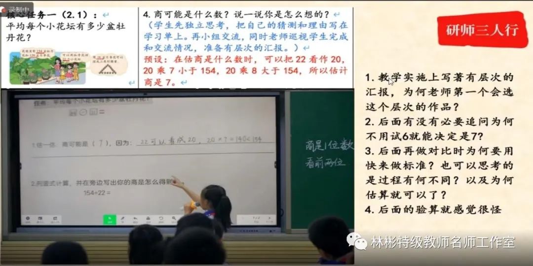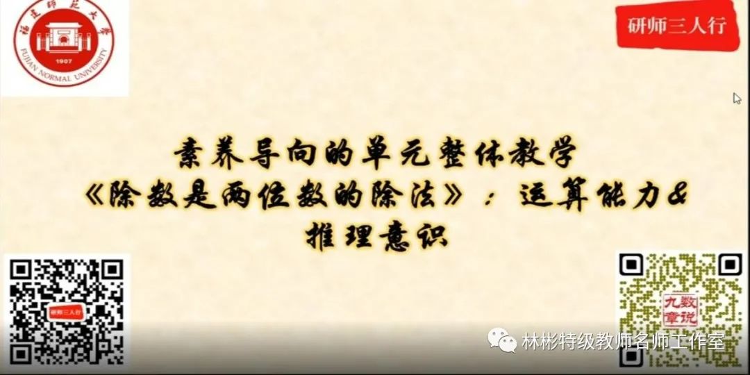勤耕之美,在于积蓄与勃发;践行之美,在于探索与提升。118日晚,林彬特级教师工作室第8次学习活动如期相约云端。本期主题继续以素养导向的单元整体教学为主线,通过案例《除数是两位数的除法》,落实运算能力推理意识核心素养。