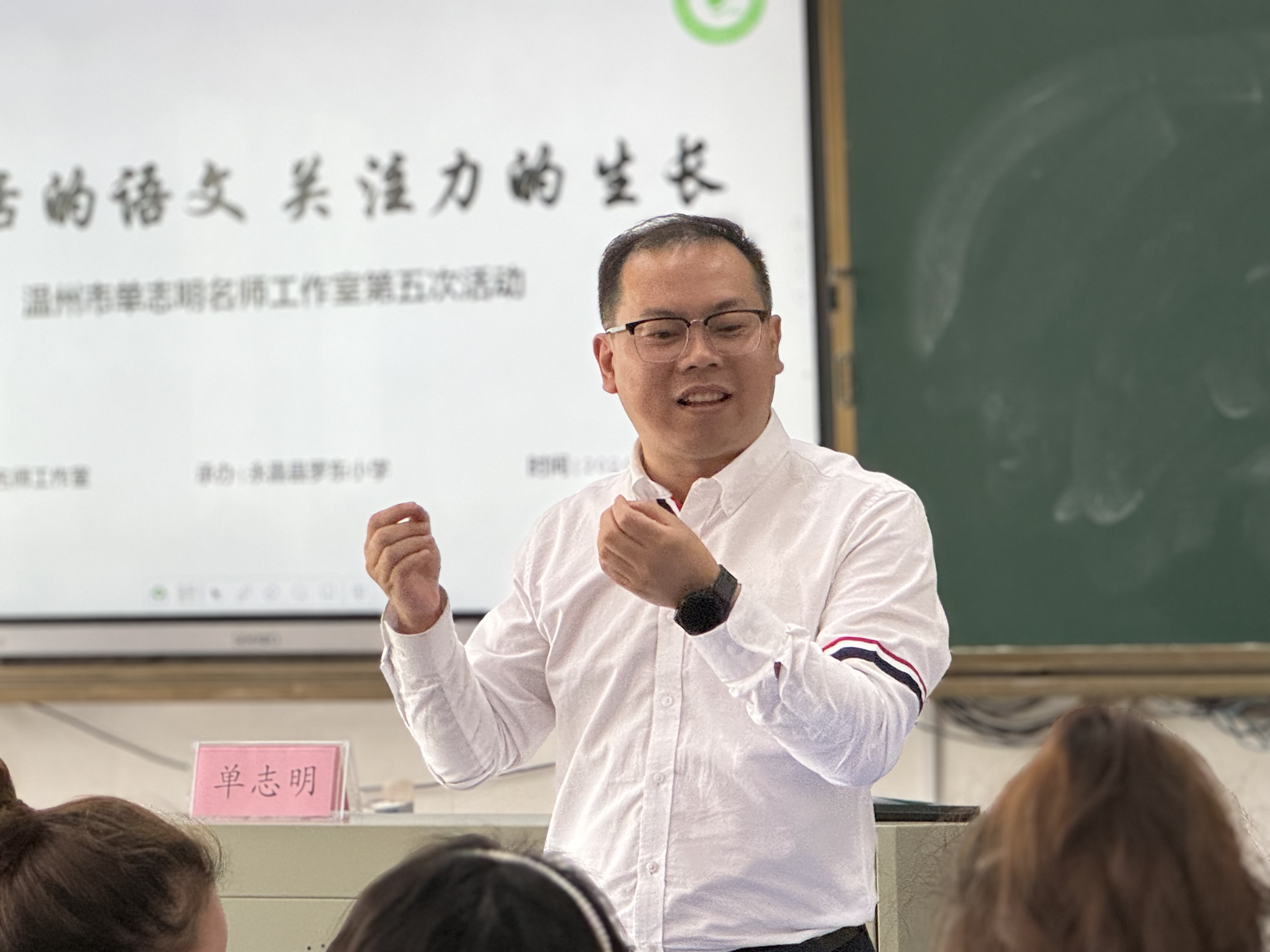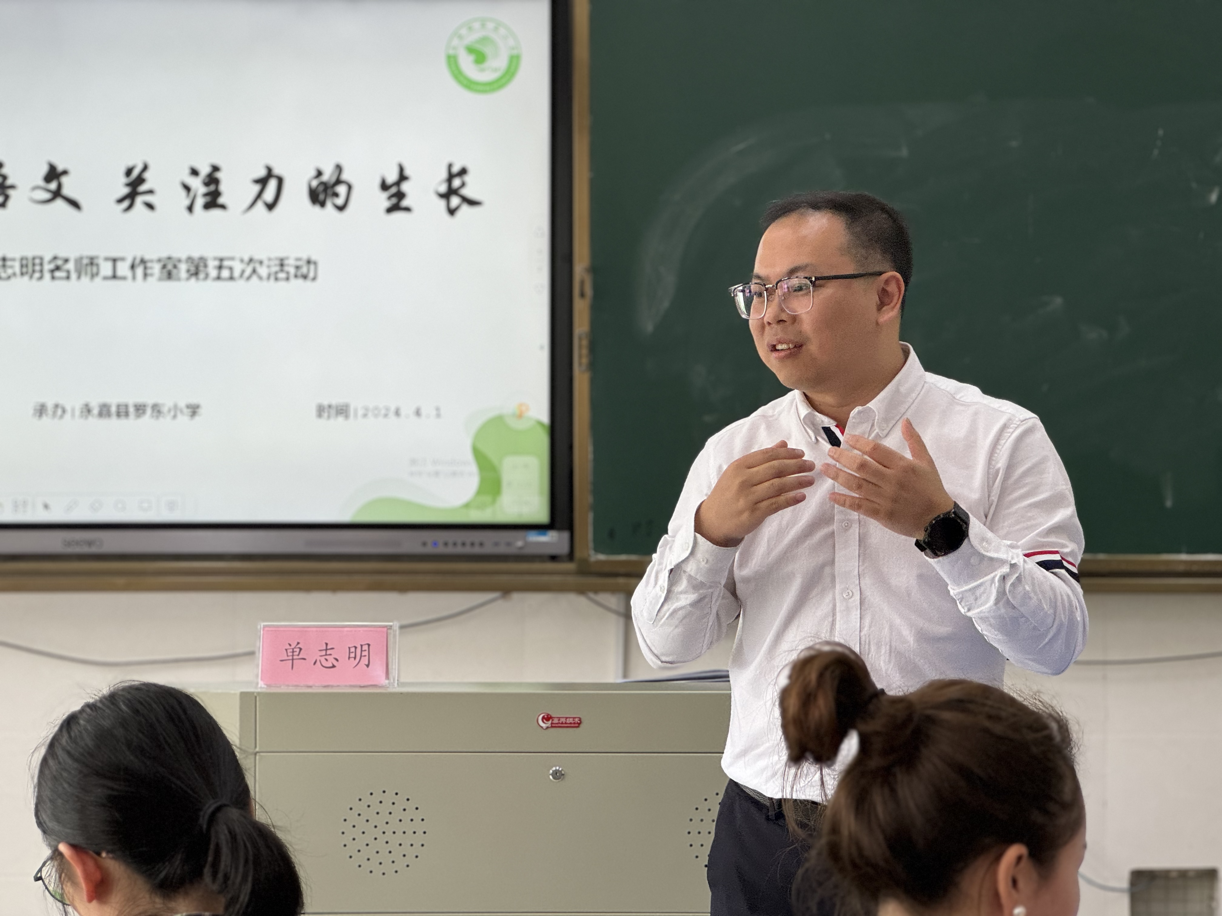 为了实践转化新课标精神,进一步打造语文“ 活力课堂”,提高课堂教学质量,4月1日,温州市单志明名师工作室开展了第5次活动。本次活动聚焦“活力好课”的探索,在依山傍水的永嘉县罗东小学举行,工作室全体学员、罗东小学、三江中心小学等周边学校近60人参与了活动。