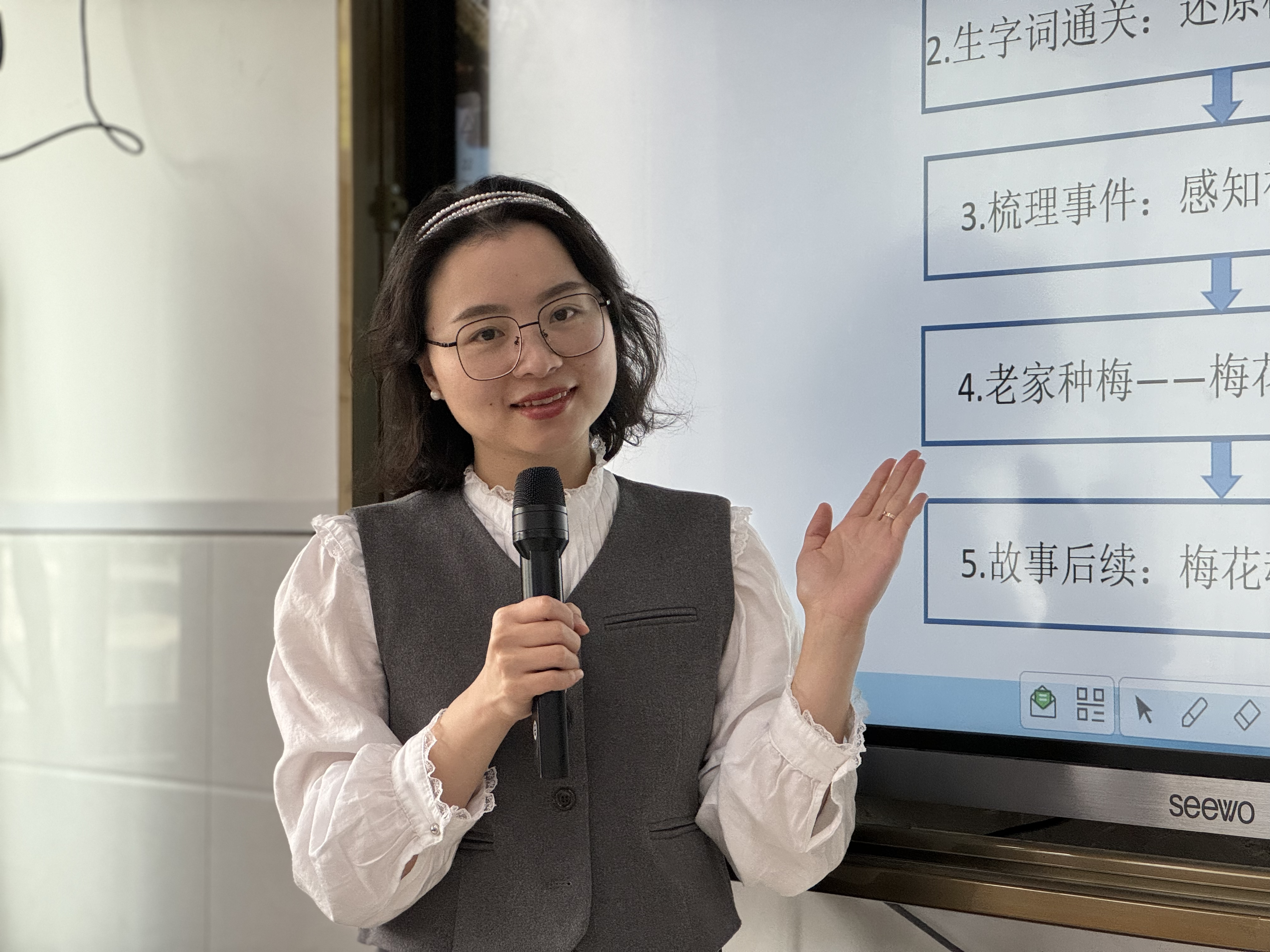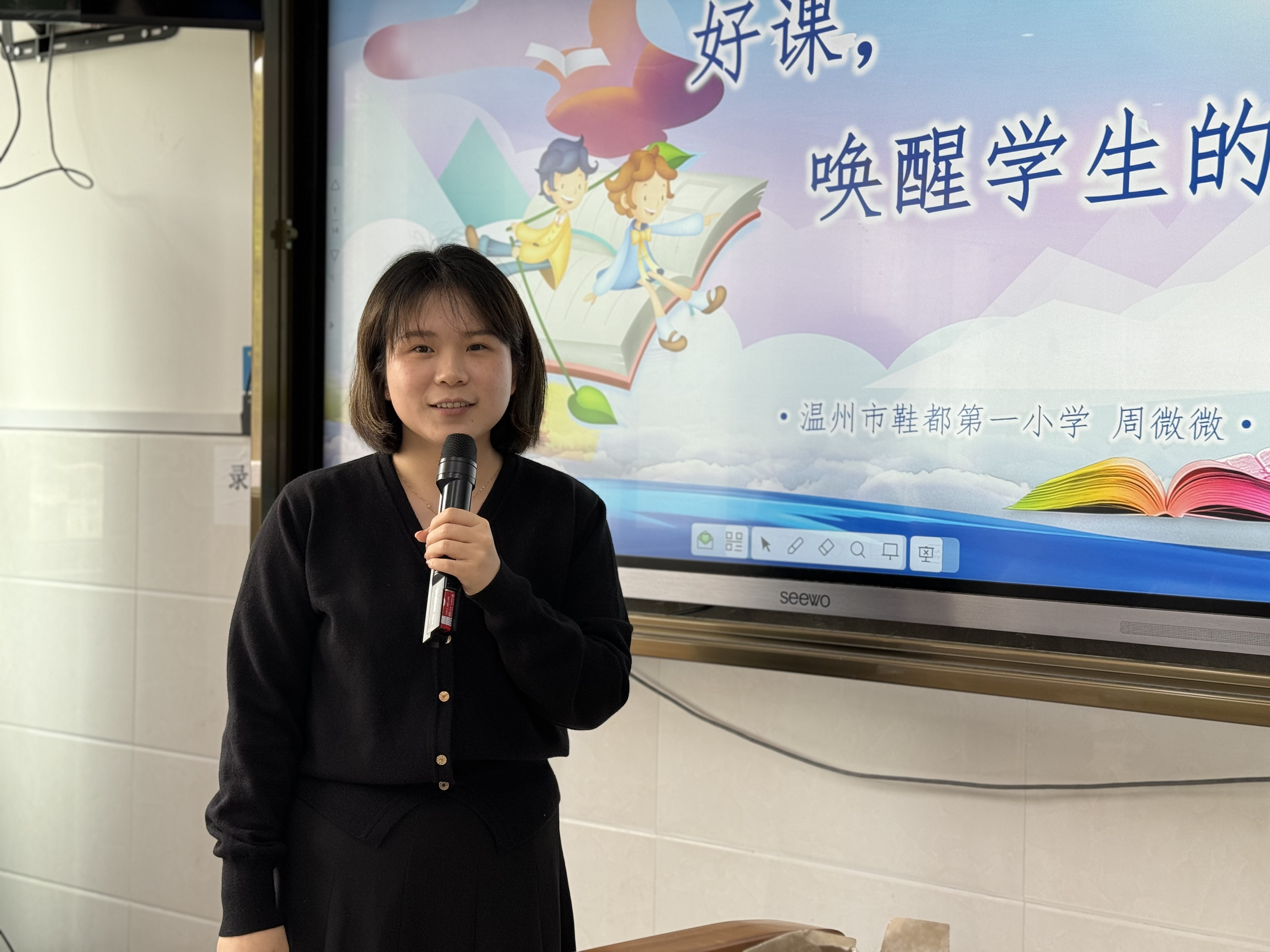 温州市生态园实验小学陈墨贤老师结合课例表述观点,她认为:好的语文课是滋养学生的水分、营养与阳光,应该饱满、纯粹且丰富,聚焦核心教学目标,注重语言运用与思维、审美、文化自信的融合。同时,课堂需富有创意,充满生长力。