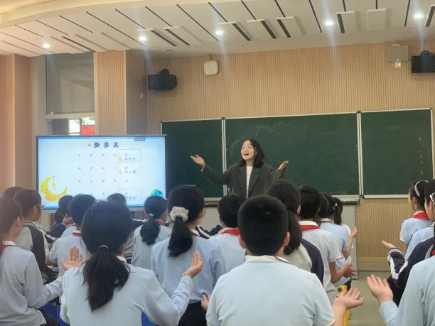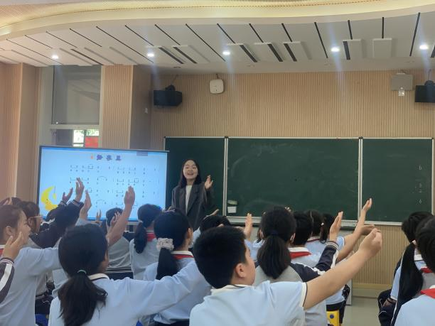 第二节课由龙港第十三小学林玉叶老师执教。上课伊始林老师紧紧抓住“古诗词”为主题,与学生复习回顾已学的古诗词音乐,随后通过抓住核心歌词帮助学生快速熟悉作品,辅助以表达旋律高低走向的身体律动手势,加深全曲印象。并以齐唱——吟诵——如影跟随的方式无痕展开教学活动。值得一提的是,林老师的最后一个教学环节——“创作属于自己的静夜思”,点亮了学生创编的明灯,学生的创作惊艳了全场,掀起了课堂的小高潮。成为了课堂的亮点,挖掘了创编的更多可能性。