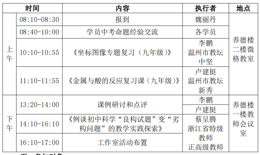 关于举行温州市蔡呈腾初中科学名师工作室第14次活动的通知