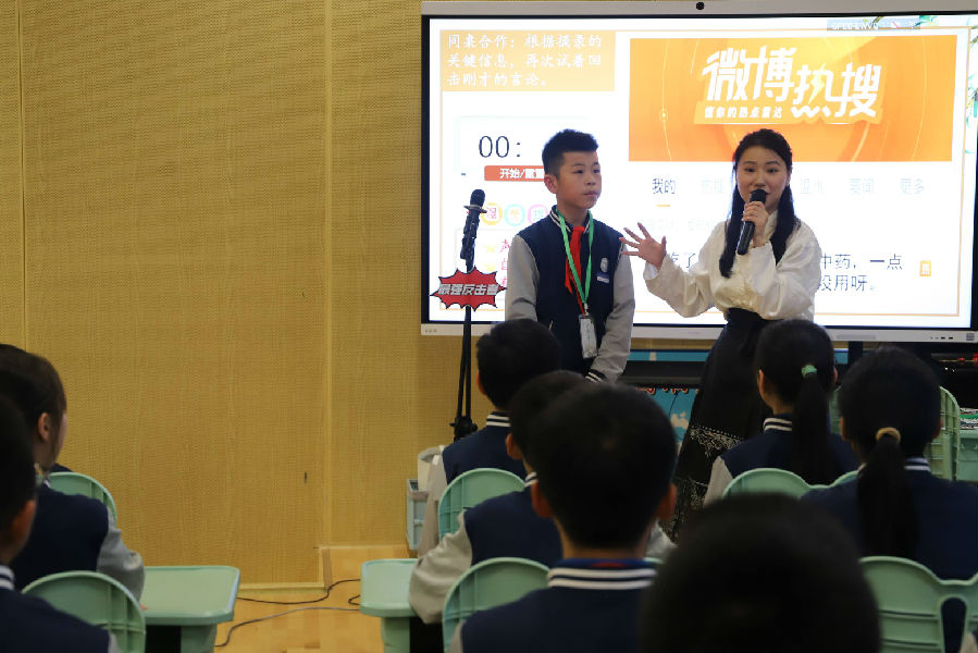 之后由瓯海区梧田南村小学徐诗依老师带来一节名为《消失的本草纲目》的课例展示。同学们在“寻找本草碎片”真相的活动中感受到,由于大众对于中医药文化还不够了解和重视,导致了中医药文化受到许多误解甚至面临被抢夺的困境。紧接着通过“我来找一找”“我来改一改”“我来辩一辩”三个活动让学生亲身体验操作,习得如何传承优秀中医药文化的方法。最后从了解国家层面的“一带一路”成果到学习身边同龄人的行动。同学们在活动中体验,在体验中感悟,在感悟中明理,在明理中形成行为品德。