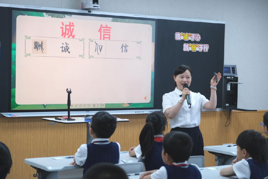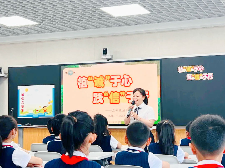 如何提高三年级学生对诚信的认知?课堂上,罗老师通过热点新闻,让学生感受诚信在社会层面上的重要性,通过问卷数据审视自我的诚信意识。在案例分享中,让学生通过演一演,谈一谈,知道“诚信”具体该做到勇于承担、说到做到,物归原主、遵守规则。