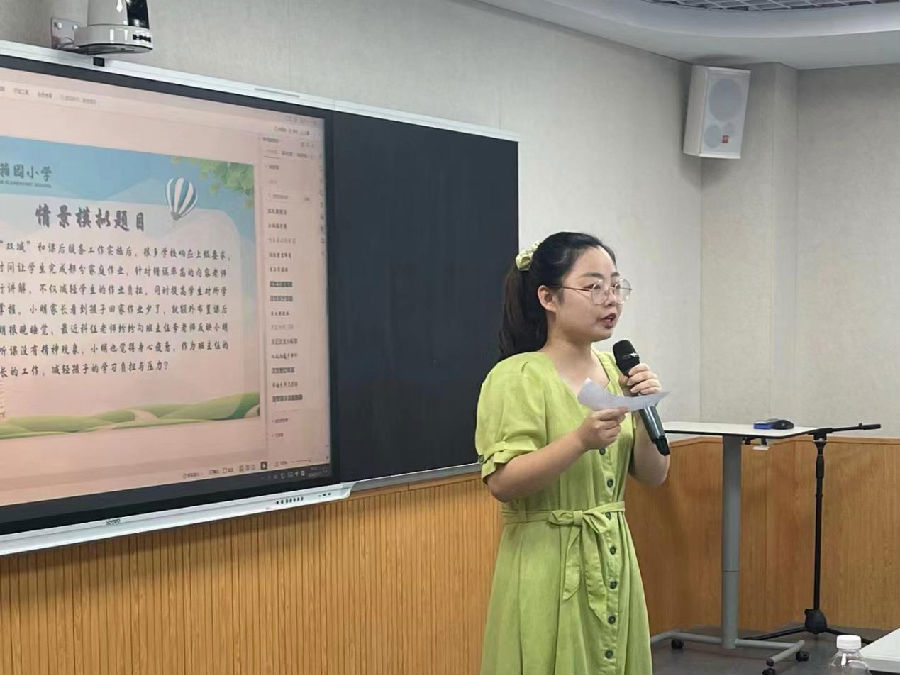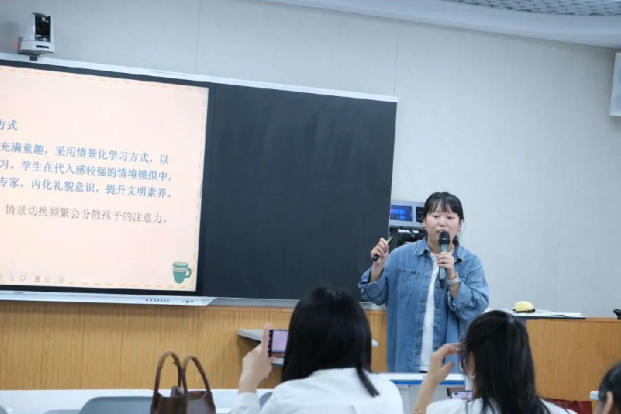 陈洁老师给大家呈现班主任大赛中的情景模拟环节,展示了班主任在处理学生问题时的应变能力和智慧。情景模拟环节充满了挑战和刺激,让在场的老师们感受到了班主任工作的复杂性和重要性。