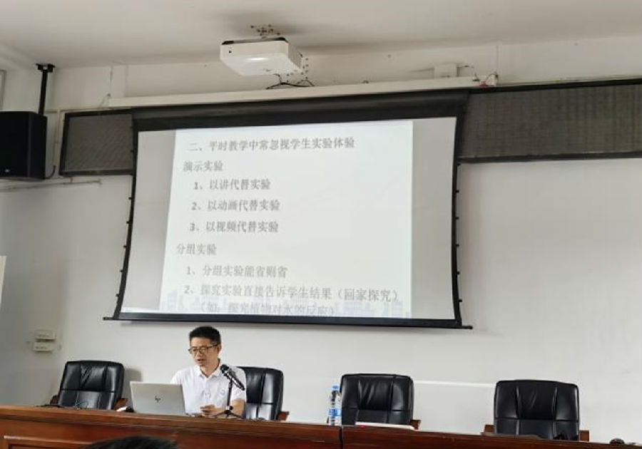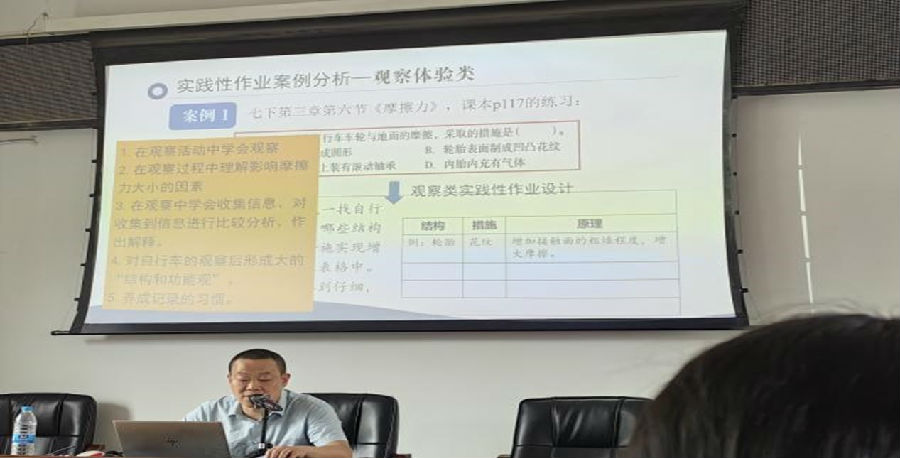 文成县教研员张吉怀老师带来了《初中科学实践性作业设计的探索》主题讲座。他先讲述了探索实践性作业的缘起,鼓励大家积极设计探究实践性作业。张老师强调,培养核心素养离不开探究实践,尤其是今年学业水平考试命题更加注重探究性和操作性,因此探究实践性作业尤为重要。他从实践性作业的功能、特征、设计原则、案例分析等方面为在场老师对实践作业做了全面的分析,也让我们对科学实践性作业进行了一次重构,给大家带来了很多启发。