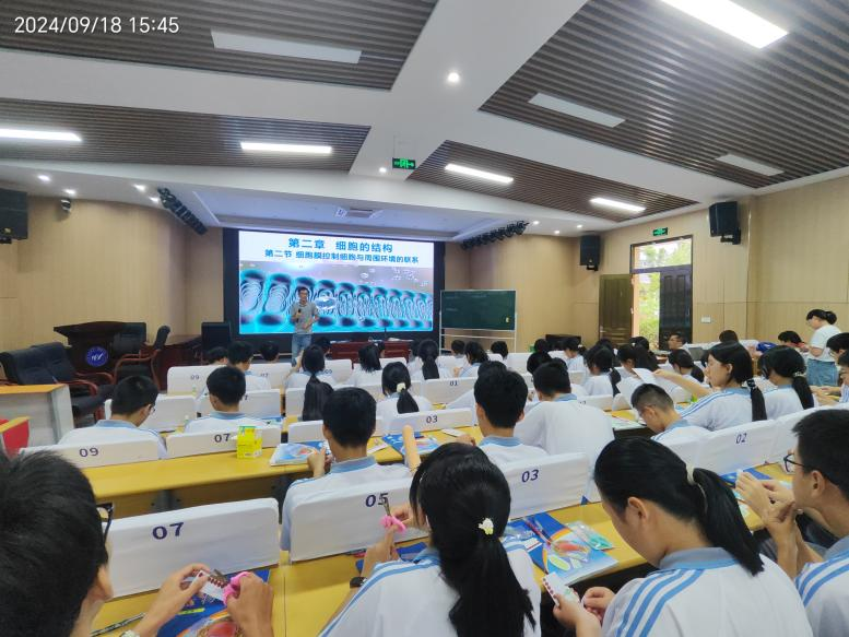 文成中学的黄晨曦老师同样进行了一堂《细胞膜控制细胞与周围环境的联系》的课堂展示,黄老师从鸡蛋导入,引出细胞膜,同时通过墨水跟鸡蛋的实验引出细胞膜的选择透性,再把细胞膜的发现历程通过学案的形式让学生阅读并得出细胞膜的成分,在探索细胞膜成分的过程中时刻紧密联系纸模型的应用,让学生充分利用纸模型加深对本节课的流动镶嵌模型的建构,最后再结合癌细胞的治疗,让学生体验知识的应用。