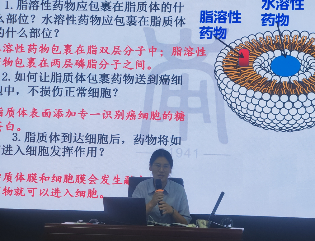 泰顺县城关中学的王丹丹老师对陈娴婷老师的课进行了点评,陈老师整堂课利用论证式教学,历史资料井然有序的呈现形成完整的证据链,开展了多项探究活动,激发了学生对流动镶嵌模型的理性探究,有效的发展了学生的科学思维,利用毛根等器材搭建流动镶嵌模型有利于学生对于流动镶嵌模型这一抽象概念的的把握,同时也激发了学社工的探索热情,最后通过脂质体运载药物也很好的注重知识与生活的联系。