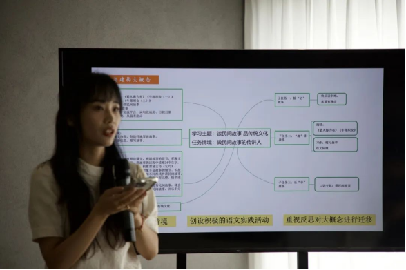 首先,周利利老师与大家分享刘徽教授编撰的书——《大概念教学:素养导向的单元整体设计》。这本书理论性强,从现实的教育问题和教育热点出发,引出了大概念以及大概念教学的必要性,并且以丰富的案例帮助我们更好地理解大概念教学的实质。周老师结合书中观点与自己的教学实践,认为我们可以从创设真实性问题情境,设计积极的语文实践活动,重视反思并对大概念进行迁移等方面培养学生的语用能力与核心素养。