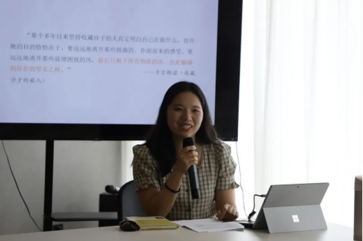 接着,周导借用《玫瑰的故事》里的一句台词“因为爱而执着,而非执着去爱”告诉我们:阅读不是负担,不是任务,而是处于内心的热爱与需要,是自我成长和完善的过程。她对所有学员提出自己的期望——希望大家在这个假期制定自己的阅读计划,读完后反观自己,映射当下,形成碎片化文字,激励或启发自己。