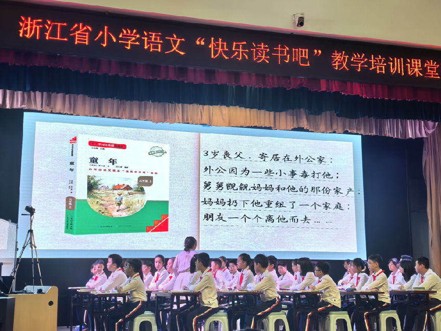 上午第一节是徐琼敏老师为我们带来的《童年》导读课。徐老师从目录入手,引导孩子发现闯关式的目录,调动了学生的阅读兴趣。随后带领学生制定一份适合自己的阅读计划,理清书中的人物关系。通过阅读第一章节加深学生对书本内容的印象,最后猜一猜主人公的结局更是激发了学生想读下去的欲望。
