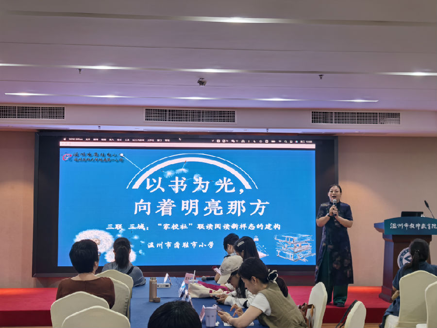 下午由温州市蒲鞋市小学书记李碧老师为我们带来《以书为光,向着光明那方》的讲座。