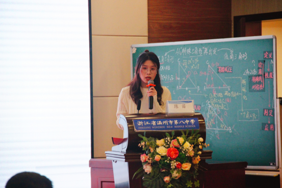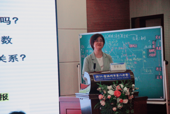 温州市南浦实验中学的陈苗老师也分享了自己的见解,她以《生成,生长,生机——逻辑生长的数学》为题,指出教学要紧扣学生生成,顺应学生认知规律,在此基础上促进认知的生长,让课堂焕发生机。