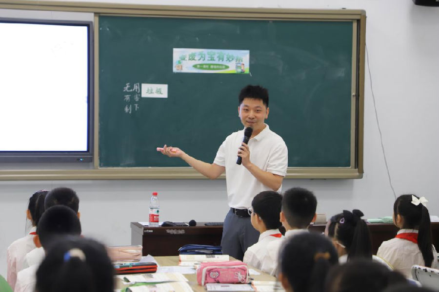 项鑫伟老师展示《变废为宝有妙招》一课,紧扣“暴增的垃圾”不断推动学生对“垃圾”的认知:从“无用”到“资源”。在结合微项目学习活动,引导学生小组探究在处理垃圾的过程中产生的各种危害,并借助AI技术进行小组活动的总结与评价,帮助学生改变固化的思维与观点,为第二课时“变废为宝”的具体策略提供了一个更高的思维认知,进一步增强学生的环保认知。