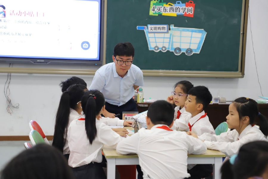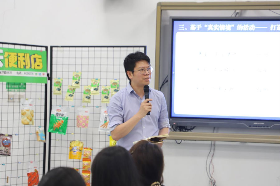来自金华的特邀骨干教师骆肖峰老师带来的《买东西的学问》一课,在创设的购物情境中寻找不文明现象。在真实的生活情境下,发现真实的生活问题,并在总情境的支持下引发出不同的任务情境,旨在培养学生良好的购物习惯,树立文明消费的观念,从生“冻”到生“动”的课堂学习转变,展现了一次富有教育意义且实践性强的教学活动。