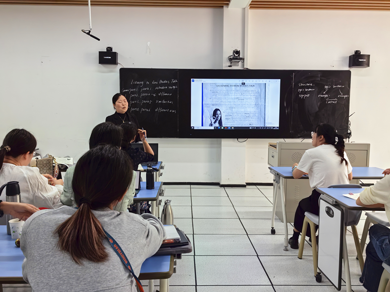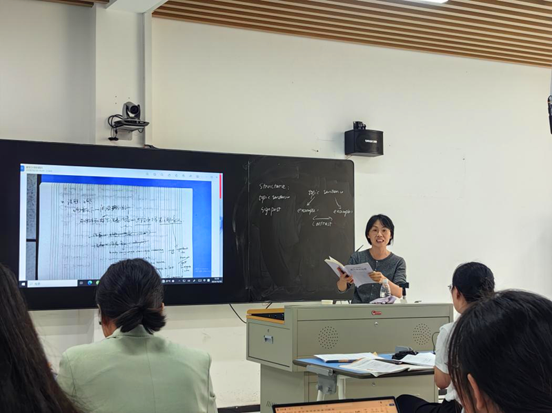 裴军老师趁热打铁,接着老师们对文本的再回归,字斟句酌地带着大家潜入文本充分解析其中的主干信息。同时提出了阅读课老师们一直面对却未必真正做出合理判断的问题:阅读课应该更多关注内容还是结构?裴老师主张内容优先,结构服务内容。并再次结合今天的阅读材料,带领大家对文本内容进行进一步的理解领悟。